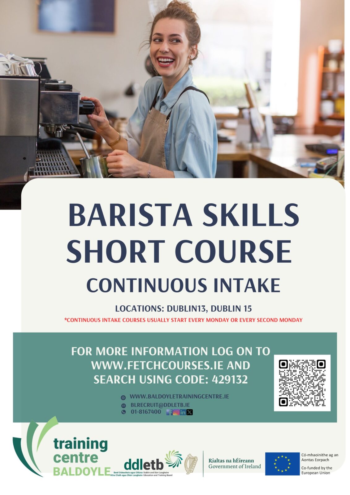 The location of the course will be based on the number of applicants from each area. Delivery locations D15 (Blanchardstown) or Dublin 13 (Baldoyle). Demand will dictate the number of start dates throughout the year. For more information and to apply for the course follow the link below: