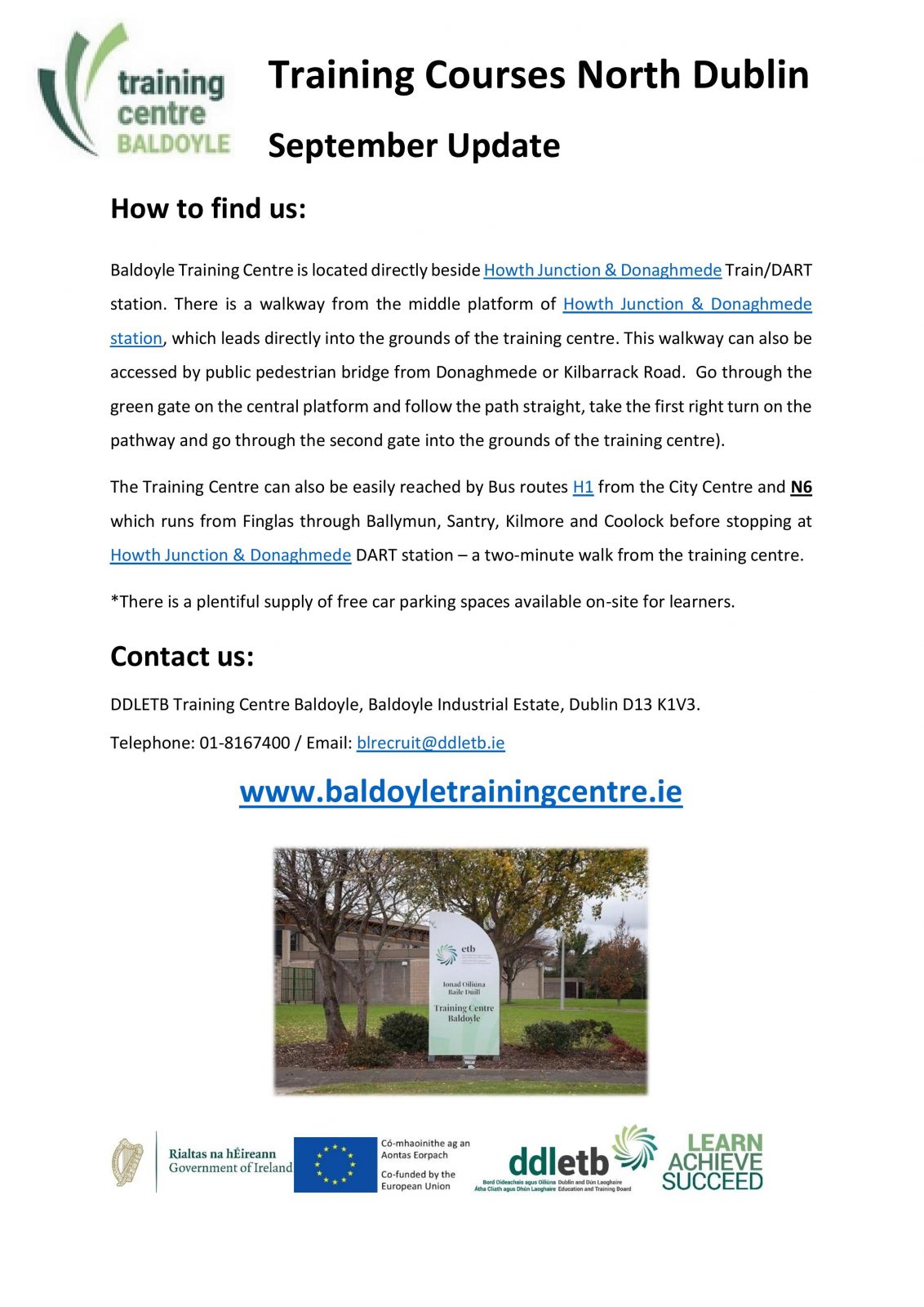 DDLETB Baldoyle Training Centre courses are co-funded by the Government of Ireland and the European Union. For further information on EU funding please visit www.eufunds.ie