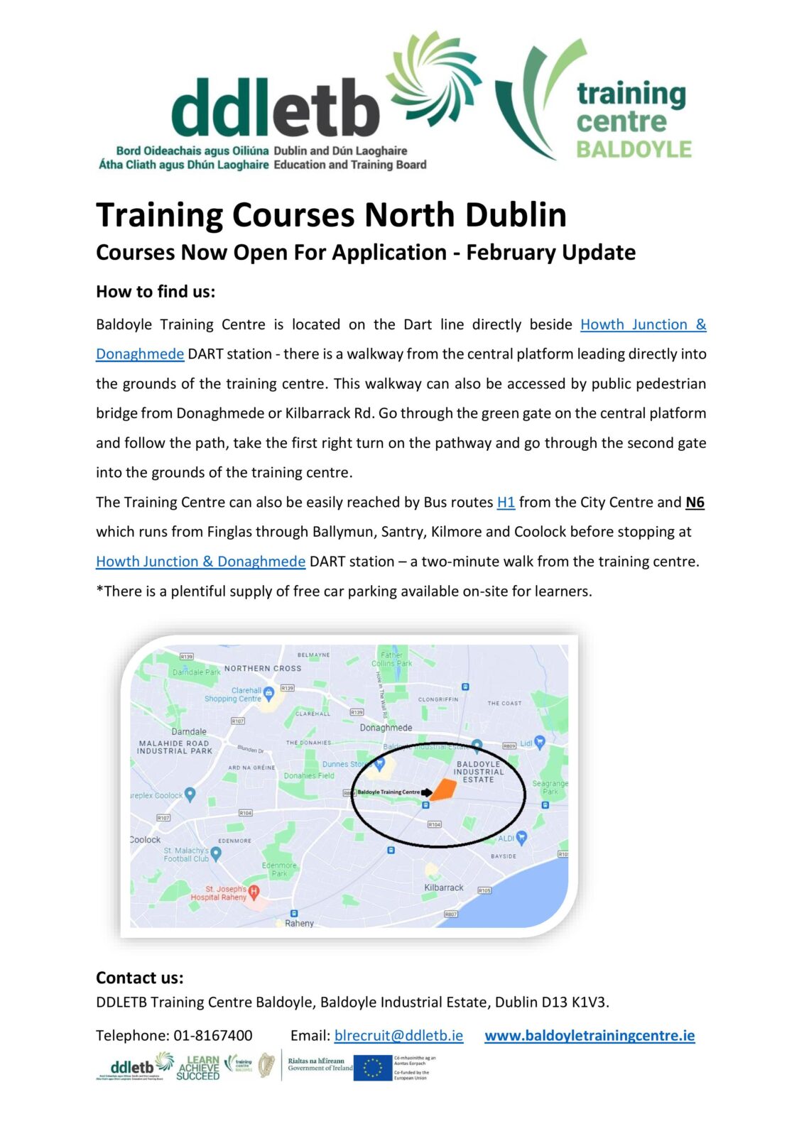 DDLETB Baldoyle Training Centre courses are co-funded by the Government of Ireland and the European Union. For further information on EU funding please visit www.eufunds.ie