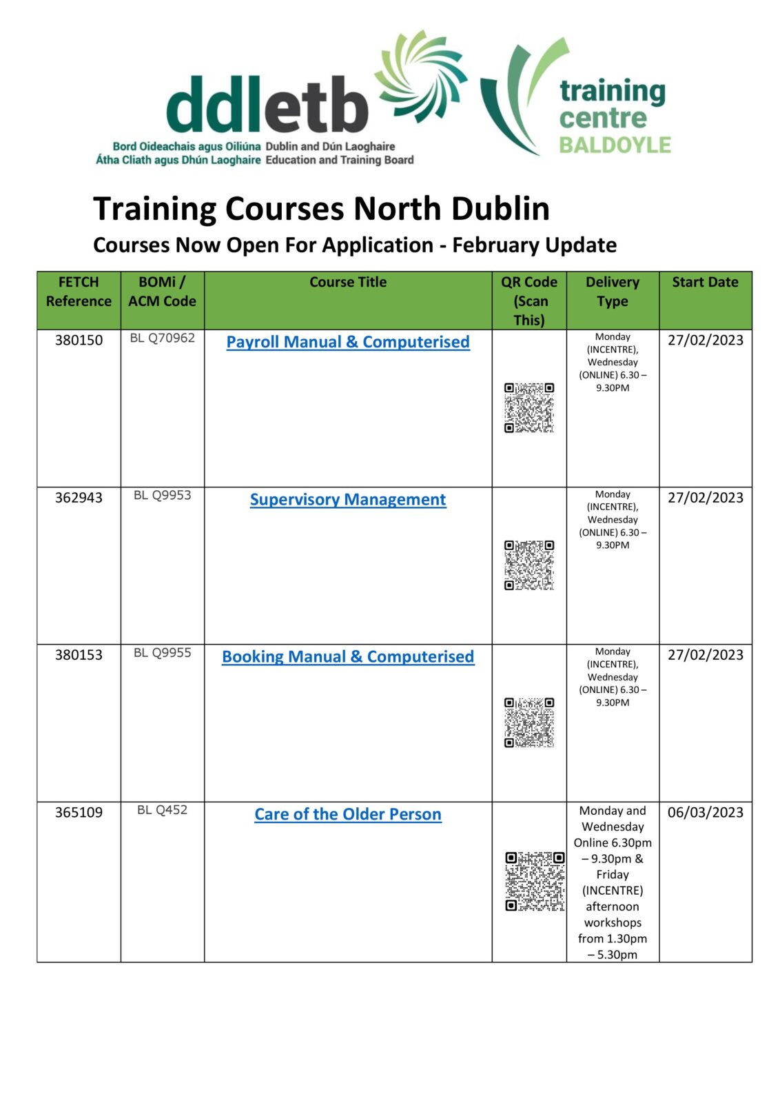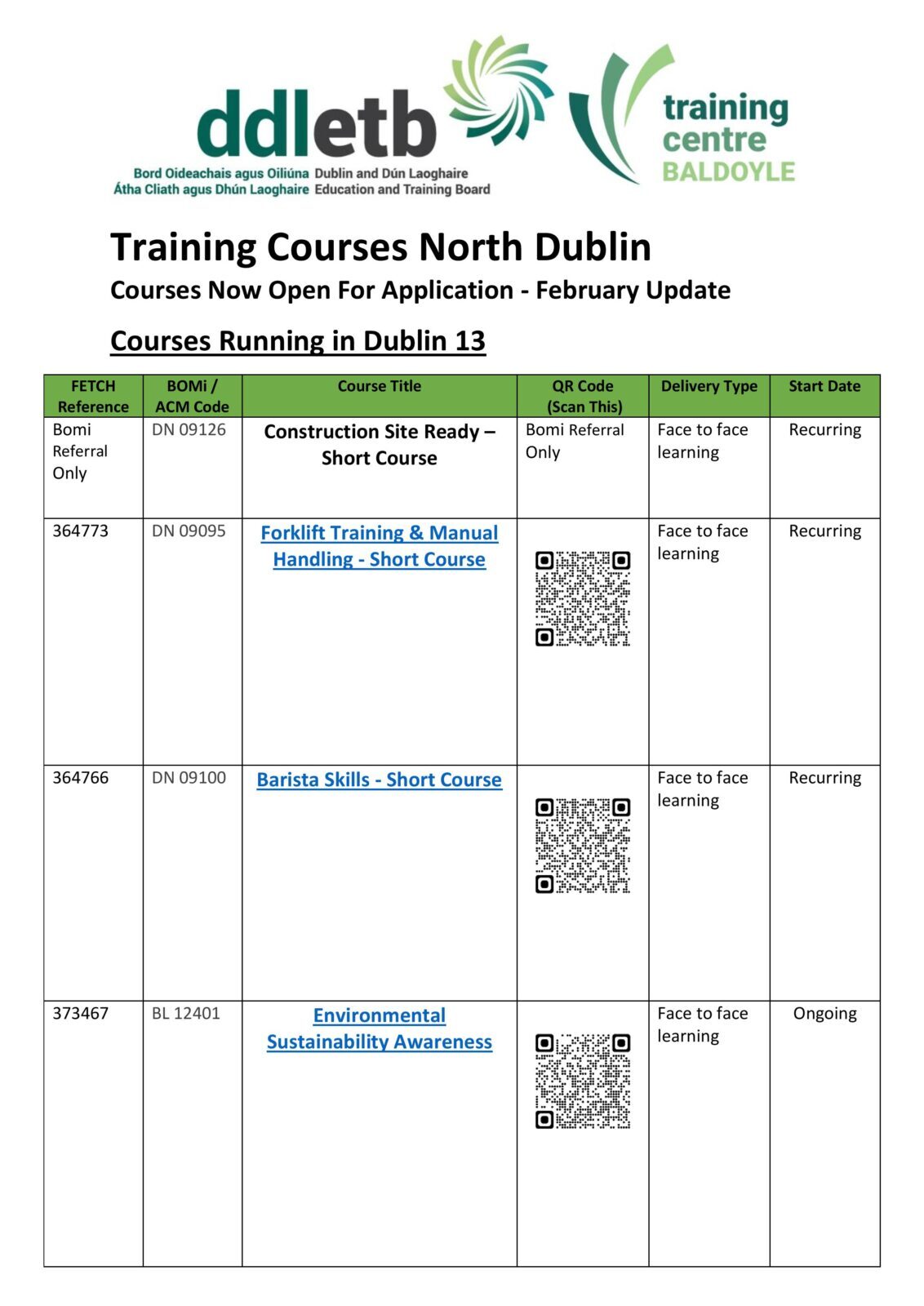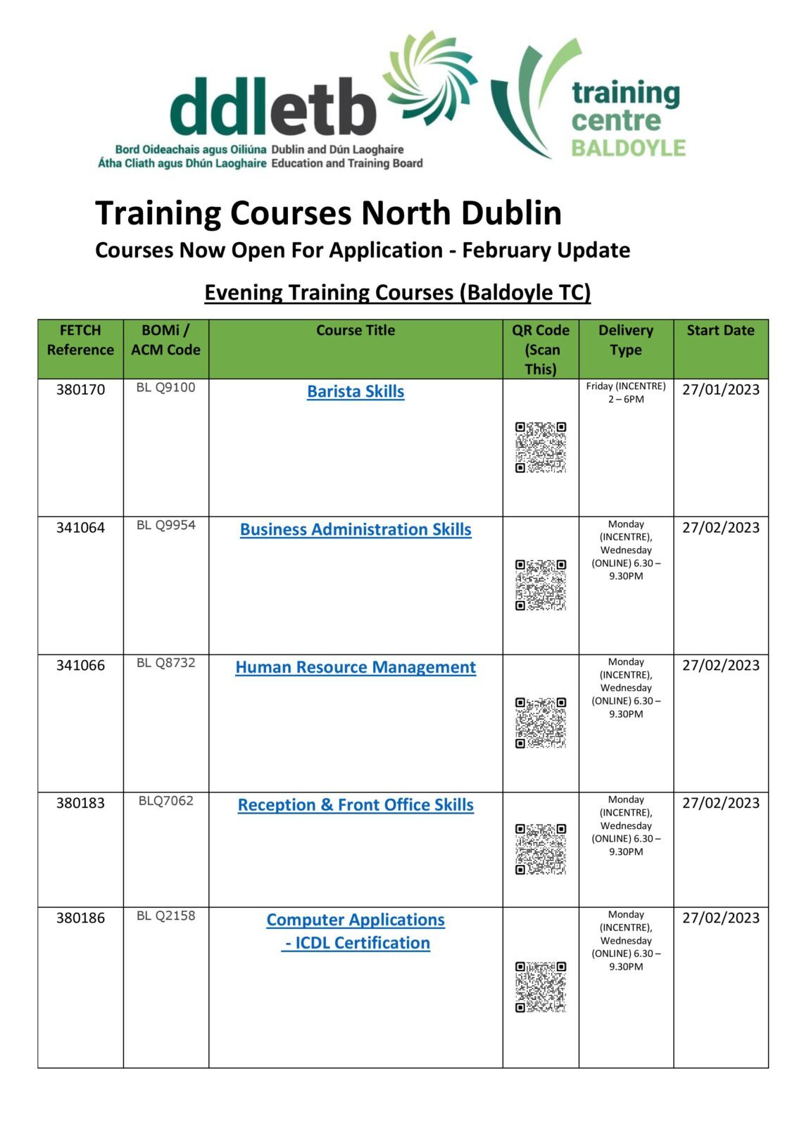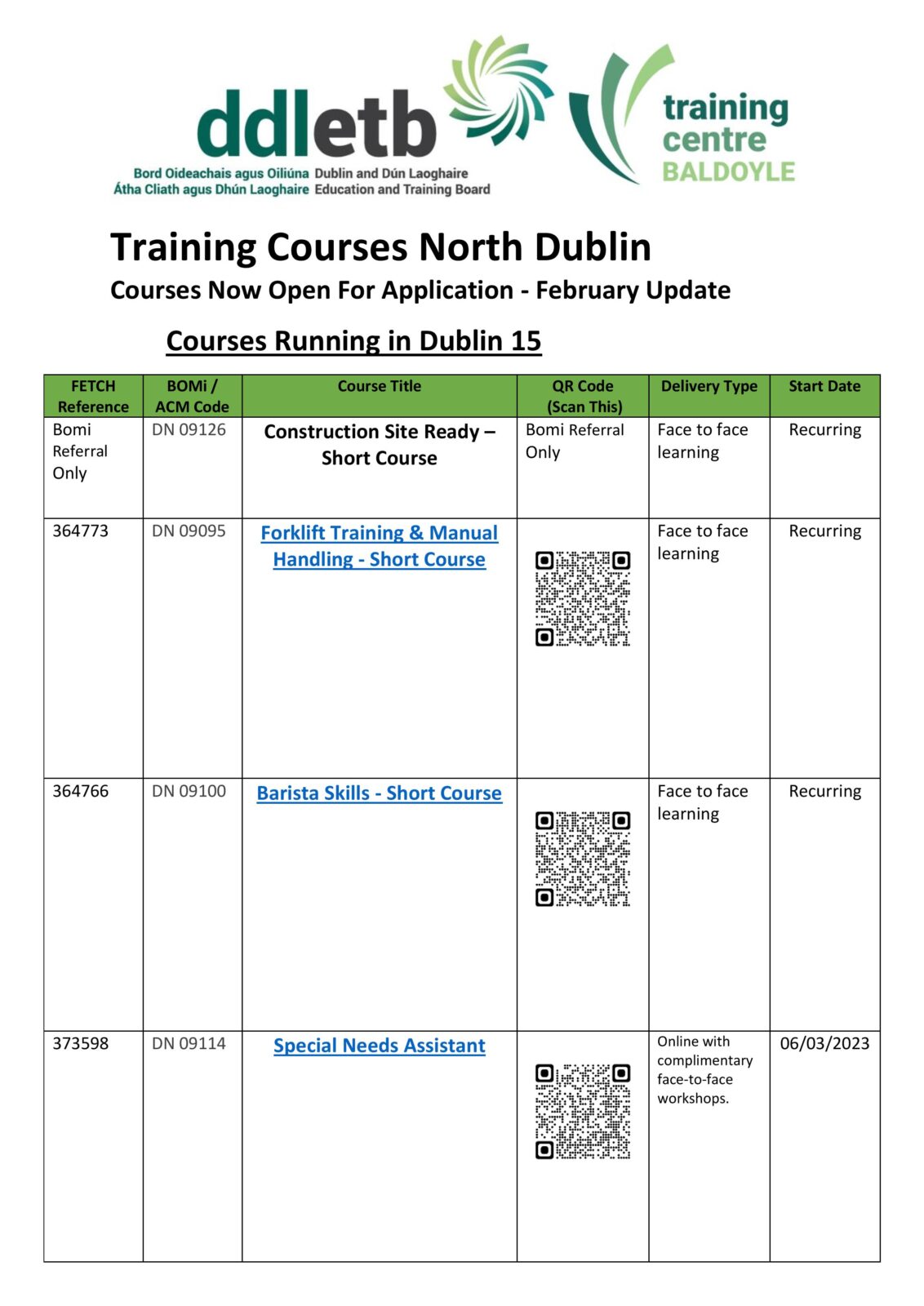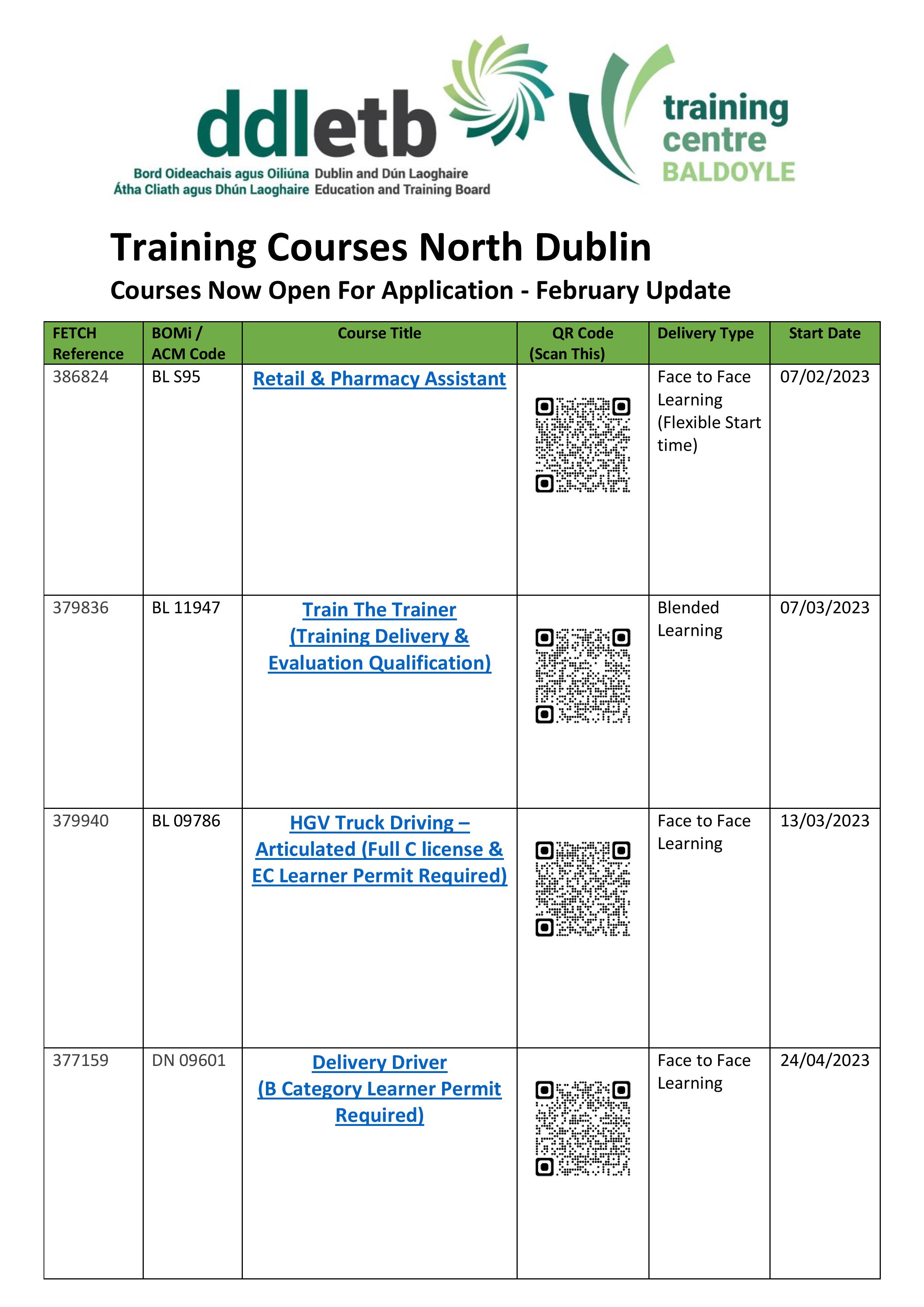 Please see our February update below. This includes training courses which will take place across Dublin North and are now open for application!