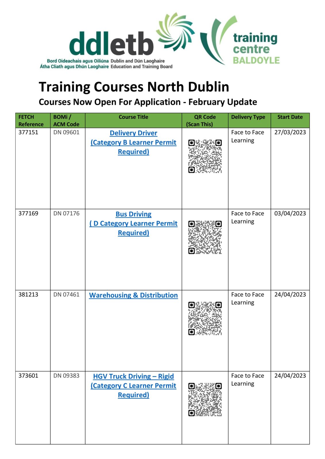 DDLETB Baldoyle Training Centre courses are co-funded by the Government of Ireland and the European Union. For further information on EU funding please visit www.eufunds.ie